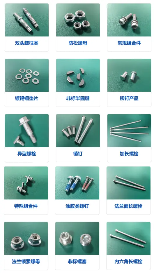 - 其他:平键、铆钉、组合件、非标定制件等。