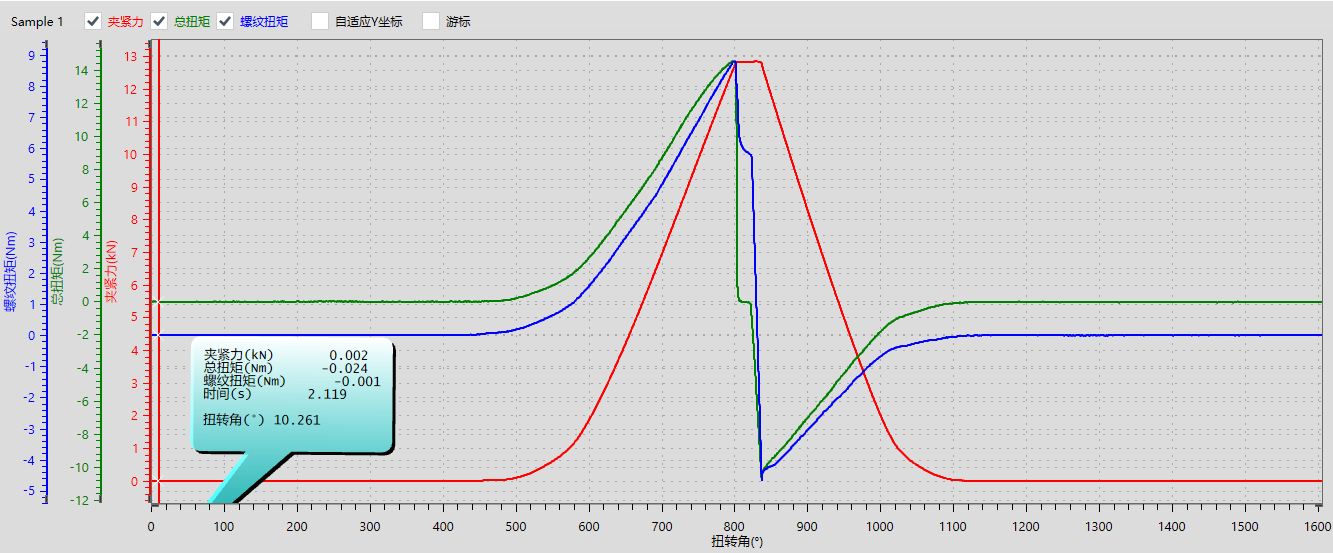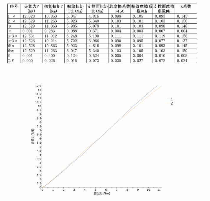 通过实时测量不同拧转角度时的夹紧力和扭矩,来分析实际拧紧过程的相关系数。