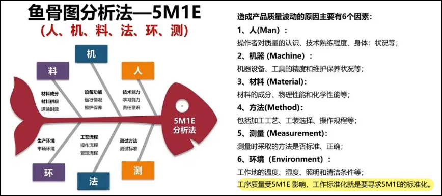 我们通常会通过检验尺寸是否符合产品公差要求来判断产品是否合格。但在大批量生产中,如果无法对每个产品进行尺寸检验,应该如何确保产品能稳定地生产出合格品?在质量控制过程中,通常要求产品在规定的要求下生产,通过控制5M1E(人机料法环测)的标准化来保障产品稳定生产。