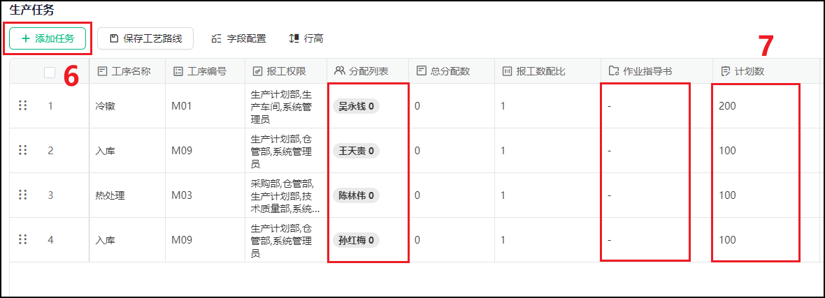 可以选择默认配置好的工艺路线。也可以按实际情况,添加任务。