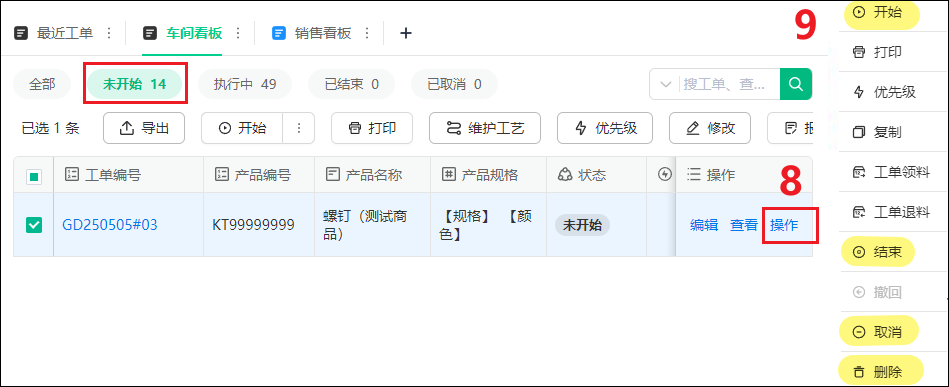 创建的工单目前会放置到未开始的标签中,需要手动控制开始和结束。