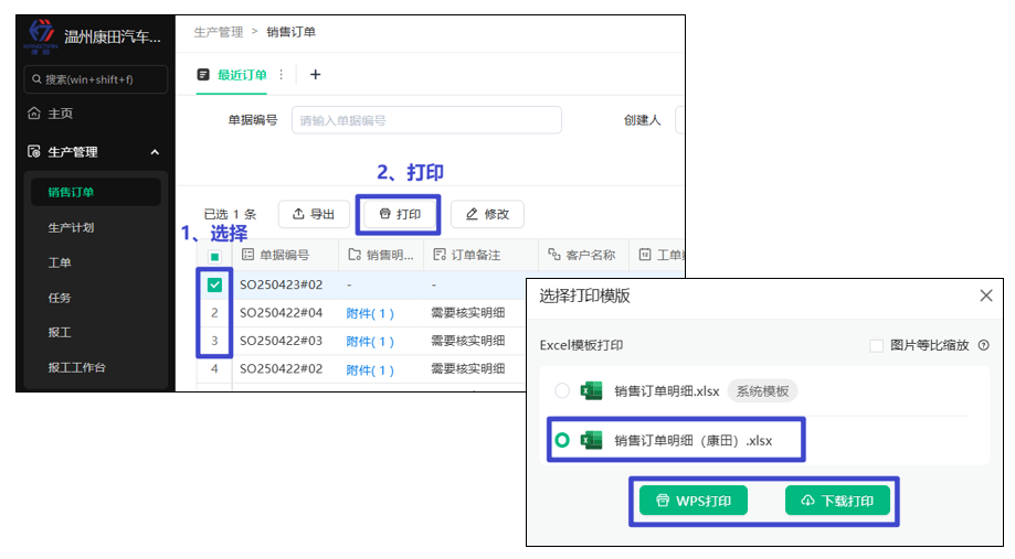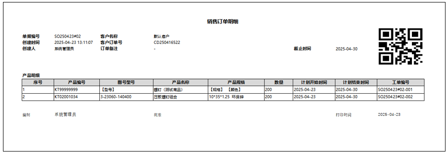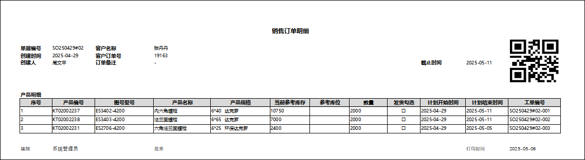 核实好后的销售订单,可以通过打印的方式,将订单明细打印出来。(已经设置多种模板)