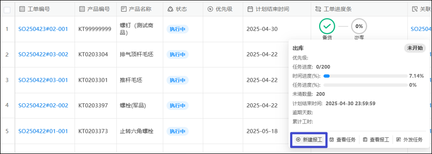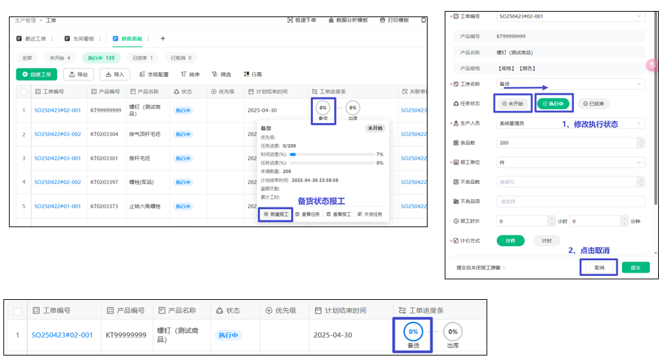 4、进行中的子工单的报工【计划/备货人负责】