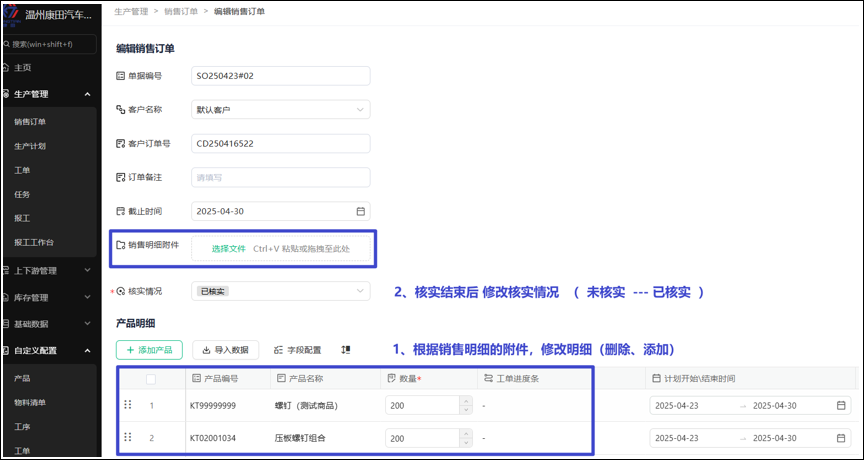 如果明细与截图信息(销售订单信息)不符合要进行修改。修改结束后,需要将核实情况的选项勾选为已核实。